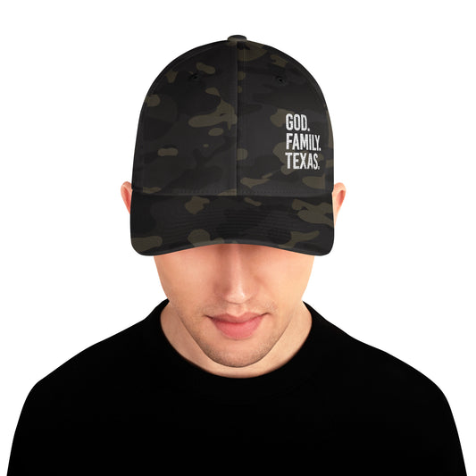 God. Family. Texas. Structured Twill Cap - Dark Green Camo