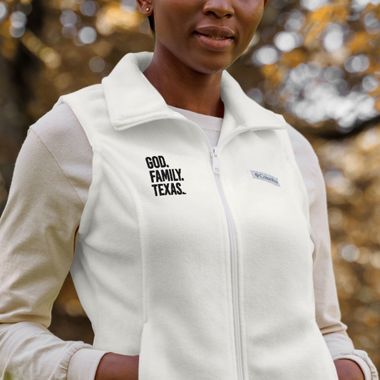 God. Family. Texas. Women’s Columbia Fleece Vest - White