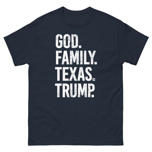 God. Family. Texas. Trump. Red T-Shirt Mens