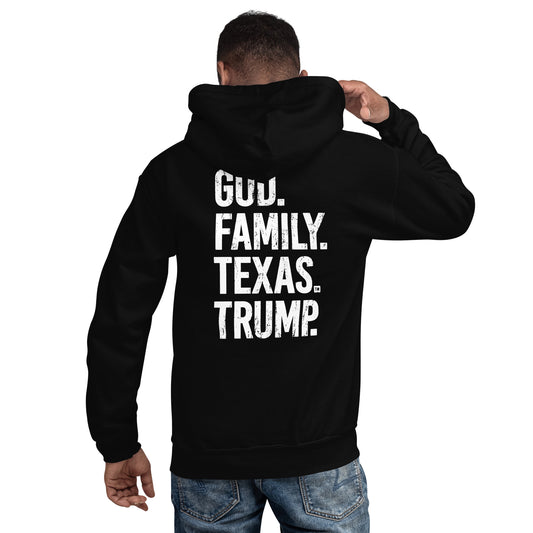 God. Family. Texas. Trump. Hoodie RWB Logo