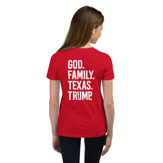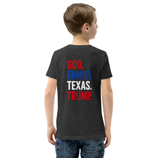 God. Family. Texas. Trump. Youth Short Sleeve T-Shirt